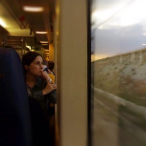 Y en silencio pasa los minutos como kilómetros. Y el tren corre veloz por la vía que nos lleva. Y ella callada, en esa lucha interior que se refleja en sus pupilas y en el cristal. Yendo y volviendo, un cuento de nunca acabar.