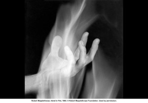 Ambos artistas fueron hombres de grandes necesidades; hambrientos de lo perfecto y exacto, buscadores de formas que los inmortalizasen; desconocedores de que la Perfección, como la Belleza y como la Fe, es insasible, inconmensurable, incalculable e imposible de alcanzar para los seres humanos. Las fotografías de Mapplethorpe alcanzan la textura de las estatuas en su juego con la luz y la bidimensionalidad; la escultura de Miguel Ángel se hace divina en el mármol cutáneo; en la delicada forma de unos labios; en la marcada transparencia de una vena o de un tendón; en la entrega apasionada hacia su propio destino. Y ambos genios se rozan, se tocan y se dan la mano en las arenas del tiempo que ha pasado.